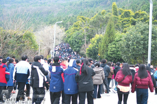 在崇文廣場到長卿山的路上,人潮涌動,再現(xiàn)摩肩接踵、人流如織的盛景。遠(yuǎn)遠(yuǎn)望去,長長的隊(duì)伍宛如一條游動的蛟龍?jiān)谏窖g緩緩蠕動,形成一道亮麗的風(fēng)景線。