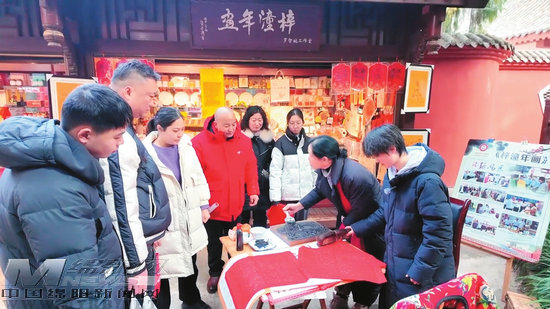 另外,在春節(jié)期間,省級非遺項(xiàng)目梓潼木刻年畫代表性傳承人羅智婉,制作多幅年畫作品在七曲山風(fēng)景區(qū)展示,還為游客免費(fèi)贈送年畫,教授年畫印制技巧。