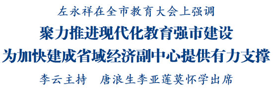 左永祥指出,要堅(jiān)持和加強(qiáng)黨對(duì)教育的全面領(lǐng)導(dǎo),為現(xiàn)代化教育強(qiáng)市建設(shè)提供堅(jiān)強(qiáng)保證。要堅(jiān)持教育優(yōu)先發(fā)展,壓緊壓實(shí)各方責(zé)任,不斷健全完善黨委統(tǒng)一領(lǐng)導(dǎo)、黨政齊抓共管、部門(mén)各負(fù)其責(zé)的教育領(lǐng)導(dǎo)體制,充分匯聚推進(jìn)教育強(qiáng)市建設(shè)的強(qiáng)大合力。要加快建設(shè)良好教育生態(tài),引導(dǎo)樹(shù)立正確的價(jià)值觀、成才觀、教育觀,加強(qiáng)對(duì)科學(xué)教育理念和改革政策的宣傳解讀力度,推動(dòng)形成定位清晰、機(jī)制健全、聯(lián)動(dòng)緊密、科學(xué)高效的學(xué)校家庭社會(huì)協(xié)同育人機(jī)制。要堅(jiān)決守住安全穩(wěn)定底線,圍繞平安校園建設(shè),合力做好校園矛盾糾紛排查化解,加強(qiáng)學(xué)生欺凌和暴力行為防范處置,細(xì)致做好校園及周邊安全、食品安全等工作,全力維護(hù)師生安全和校園穩(wěn)定。全市廣大教師和教育工作者要牢記為黨育人、為國(guó)育才的初心使命,大力弘揚(yáng)教育家精神,既精通專(zhuān)業(yè)知識(shí)、做好“經(jīng)師”,又涵養(yǎng)德行、當(dāng)好“人師”,努力培養(yǎng)更多德智體美勞全面發(fā)展的社會(huì)主義建設(shè)者和接班人。