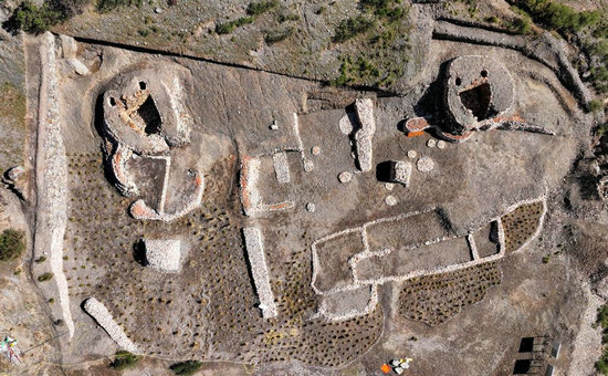 這是蘇峪口瓷窯址部分發(fā)掘現(xiàn)場(chǎng)航拍畫(huà)面。新華社記者 馮開(kāi)華 攝