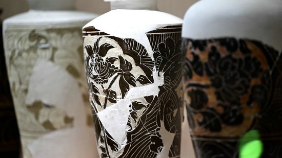 這是此前靈武窯出土的西夏黑釉剔刻花瓷器。新華社記者 馮開(kāi)華 攝
