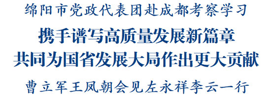 曹立軍、王鳳朝代表成都市委、市政府對(duì)綿陽(yáng)市黨政代表團(tuán)一行來(lái)蓉考察表示歡迎,向綿陽(yáng)一直以來(lái)對(duì)成都經(jīng)濟(jì)社會(huì)發(fā)展的支持幫助表示感謝。曹立軍說(shuō),當(dāng)前成都正深入學(xué)習(xí)貫徹習(xí)近平總書(shū)記對(duì)四川工作系列重要指示精神,積極搶抓新時(shí)代西部大開(kāi)發(fā)、成渝地區(qū)雙城經(jīng)濟(jì)圈建設(shè)等重大戰(zhàn)略機(jī)遇,認(rèn)真落實(shí)省委研究支持成都市高質(zhì)量發(fā)展專題會(huì)議部署要求,全力以赴拼經(jīng)濟(jì)、搞建設(shè),加快建設(shè)西部經(jīng)濟(jì)中心、科技創(chuàng)新中心、對(duì)外交往中心和全國(guó)先進(jìn)制造業(yè)基地,全面建設(shè)踐行新發(fā)展理念的公園城市示范區(qū)。成都與綿陽(yáng)地緣相近、人緣相親、交往頻繁,近年來(lái)兩地在科技創(chuàng)新、產(chǎn)業(yè)發(fā)展、社會(huì)治理、民生改善等領(lǐng)域取得了一系列務(wù)實(shí)有效的合作成果。作為全省和成渝地區(qū)重要城市,成綿兩地持續(xù)深化協(xié)同聯(lián)動(dòng),既是發(fā)展所需、也是使命所在。希望雙方在共同服務(wù)國(guó)家重大戰(zhàn)略、強(qiáng)化科創(chuàng)資源對(duì)接轉(zhuǎn)化、推動(dòng)基礎(chǔ)設(shè)施互聯(lián)互通、促進(jìn)公共服務(wù)普惠共享等方面加強(qiáng)協(xié)同合作,共同為奮力譜寫(xiě)中國(guó)式現(xiàn)代化四川新篇章貢獻(xiàn)更大力量。