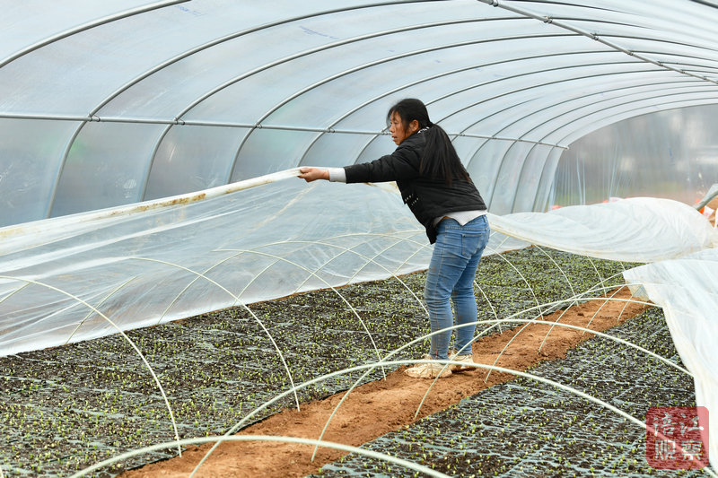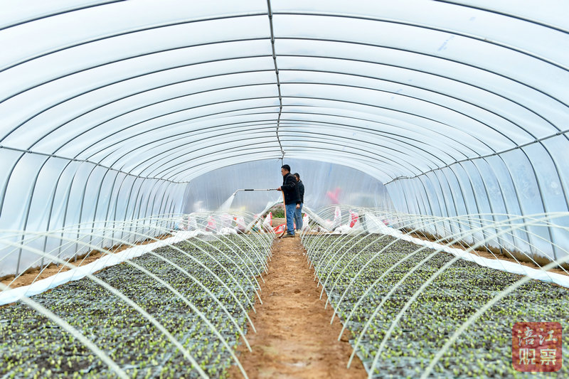 在不遠(yuǎn)處的兩座大棚內(nèi),瓜農(nóng)夫妻倆正細(xì)心地為剛破土而出的幼苗淋水。今年,他們計劃種植70畝西瓜,十幾天后將雇傭更多的人來栽苗。