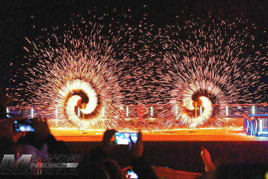 非遺打鐵花表演更是將現(xiàn)場氣氛推向頂點(diǎn)。只見幾位技藝高超的匠人手持火壺和鐵棒,演繹了一場驚心動(dòng)魄的打鐵花表演。鐵水飛濺,火花四散,猶如滿天星辰,點(diǎn)亮了整個(gè)夜空。緊接著,兩只絢麗的“飛天鳳凰”在舞臺(tái)上騰空而起,展翅翱翔,為觀眾帶來一場震撼心靈的視覺盛宴。