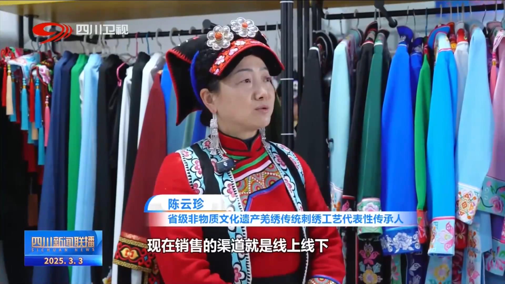 省級(jí)非物質(zhì)文化遺產(chǎn)羌繡傳統(tǒng)刺繡工藝代表性傳承人 陳云珍:現(xiàn)在銷售的渠道就是線上線下,我們一起共同來(lái)傳承這個(gè)文化,不單單走出大山,還想走出全國(guó)乃至于全世界。