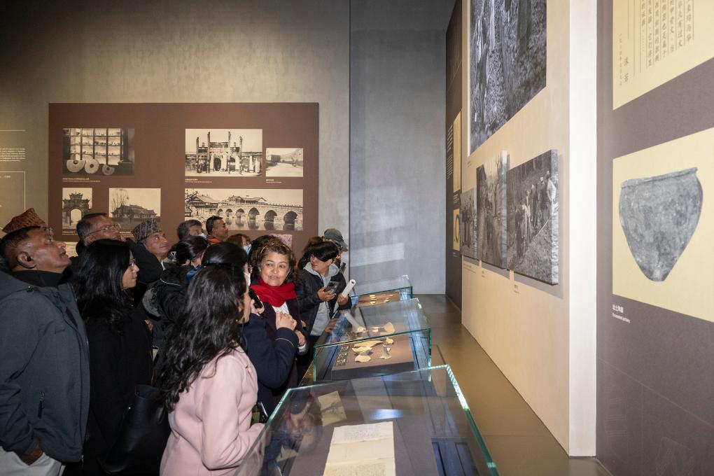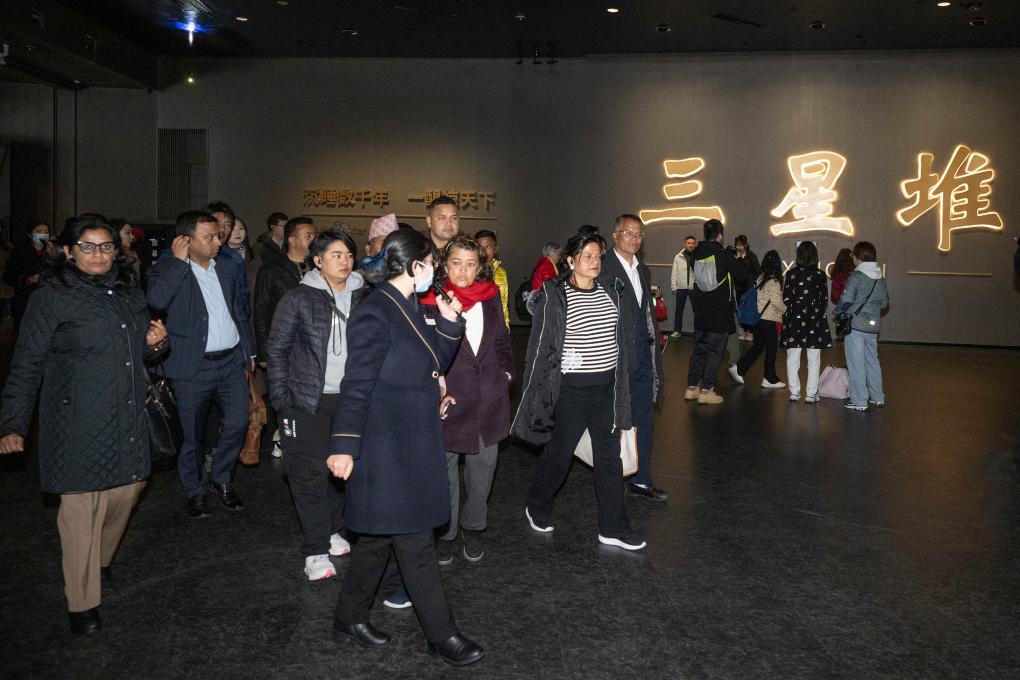 尼泊爾大會黨干部考察團成員在四川省廣漢市三星堆博物館參觀(2月26日攝)。新華社記者 于艾岑 攝
