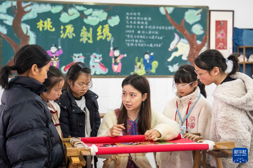 近年來,湖南省常德市桃源縣充分利用地方文化資源,常態(tài)化開展非遺進(jìn)校園活動,將當(dāng)?shù)胤沁z項目——桃源刺繡技藝引進(jìn)課堂,定期邀請非物質(zhì)文化遺產(chǎn)代表性傳承人走進(jìn)校園,進(jìn)行傳統(tǒng)文化授課,讓學(xué)生親身感受非物質(zhì)文化遺產(chǎn)的魅力,讓傳統(tǒng)文化薪火相傳。