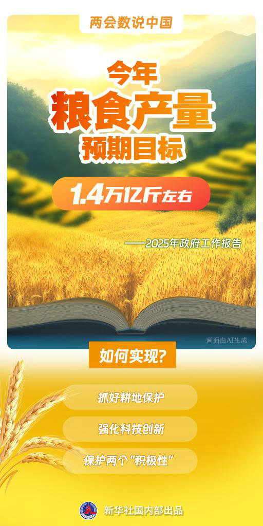 這是我國在糧食產(chǎn)量連續(xù)10年穩(wěn)定在1.3萬億斤以上、2024年突破1.4萬億斤新臺階后,首次在政府工作報告中對糧食產(chǎn)量提出1.4萬億斤左右的新目標(biāo)。