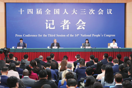 3月7日,十四屆全國人大三次會議在北京梅地亞中心新聞發(fā)布廳舉行記者會。中共中央政治局委員、外交部長王毅就中國外交政策和對外關(guān)系回答中外記者提問。(新華社發(fā))