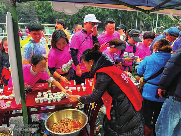 賽道更是一條流動(dòng)的文化長(zhǎng)廊。每屆比賽近30個(gè)補(bǔ)給站、氛圍加油站分布于賽道兩旁,構(gòu)建起“可觸可感”的城市敘事墻:麻辣鮮香的江油肥腸、口感豐富的春卷和冷沾沾、清爽解渴的武都冰粉喚醒舌尖記憶,非遺展區(qū)的羌族刺繡、木雕工藝訴說(shuō)著指尖匠心……