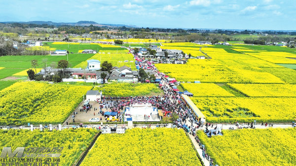 在秀水鎮(zhèn)優(yōu)質糧油現(xiàn)代農(nóng)業(yè)園區(qū),金黃的花海隨風搖曳,與川西北特色村落相互映襯,游客漫步其間,宛如一幅絕美的春日畫卷。活動現(xiàn)場,《蓮蕭打出幸福來》《不忘初心》等原創(chuàng)文藝節(jié)目與非遺展演相映成趣,春耕體驗區(qū)、風箏競技場等沉浸式項目人氣爆棚,帶動溫泉康養(yǎng)、精品民宿、生態(tài)餐飲等業(yè)態(tài)全面升溫。