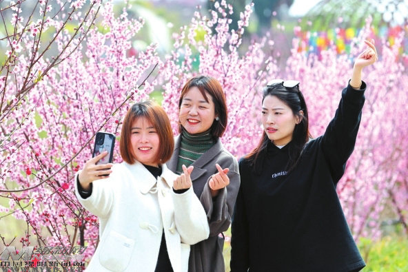“每朵桃花都是鄉(xiāng)村振興的請柬。”二郎廟鎮(zhèn)人大主席梁雅新指著綿延的桃花山介紹,古鎮(zhèn)正積極探索“農(nóng)旅+紅旅”的“青林模式”,以花為媒,圍繞“桃花+”做文章,桃花節(jié)已成為對外交往的一張靚麗名片。