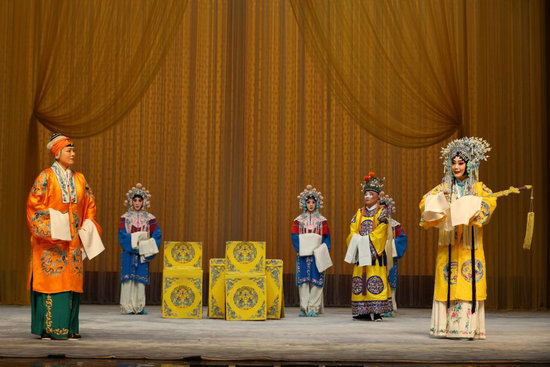 3月16日,演員在京劇《龍鳳呈祥》中表演。(天津中華劇院供圖)