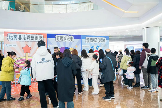 活動形式多元,融合了線下落地宣傳與線上互動。線下:“一起守護購彩者權益”主題宣傳板塊,通過設立咨詢臺、發(fā)放宣傳資料,向市民普及購彩者的權益及維護方法。工作人員耐心解答市民疑問,從體育彩票購買規(guī)則、兌獎流程,到常見購彩陷阱與應對策略,全方位為購彩者提供保障。互動游戲環(huán)節(jié)更是精彩,在“遠離非法彩票圈套”游戲中,參與者置身模擬場景,識破非法彩票偽裝,深刻認識其危害;“責任彩票知識問答飛鏢賽”巧妙地將責任彩票知識融入飛鏢游戲,參與者投擲飛鏢時快速答題,寓教于樂;而“拒絕非法彩票趣味拼圖”別具一格,現(xiàn)場兩幅巨大的哪吒熱點海報拼圖,配上“是騙是詐,我一眼就能看穿”的醒目標語,參與者在完成拼圖過程中,加深了對非法彩票的認知,趣味性與教育性完美融合。線上活動同樣熱鬧:市民在線上為合法健康購彩提示點贊,在活動現(xiàn)場參與互動游戲打卡,就有機會獲得體育彩票套餐票和精美禮品。線上線下聯(lián)動,極大調(diào)動了市民參與的積極性,讓更多人關注到購彩者權益保護的重要性。