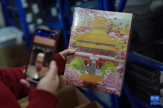 3月20日,工作人員展示一款與故宮博物院聯(lián)名推出的文創(chuàng)拼圖。
