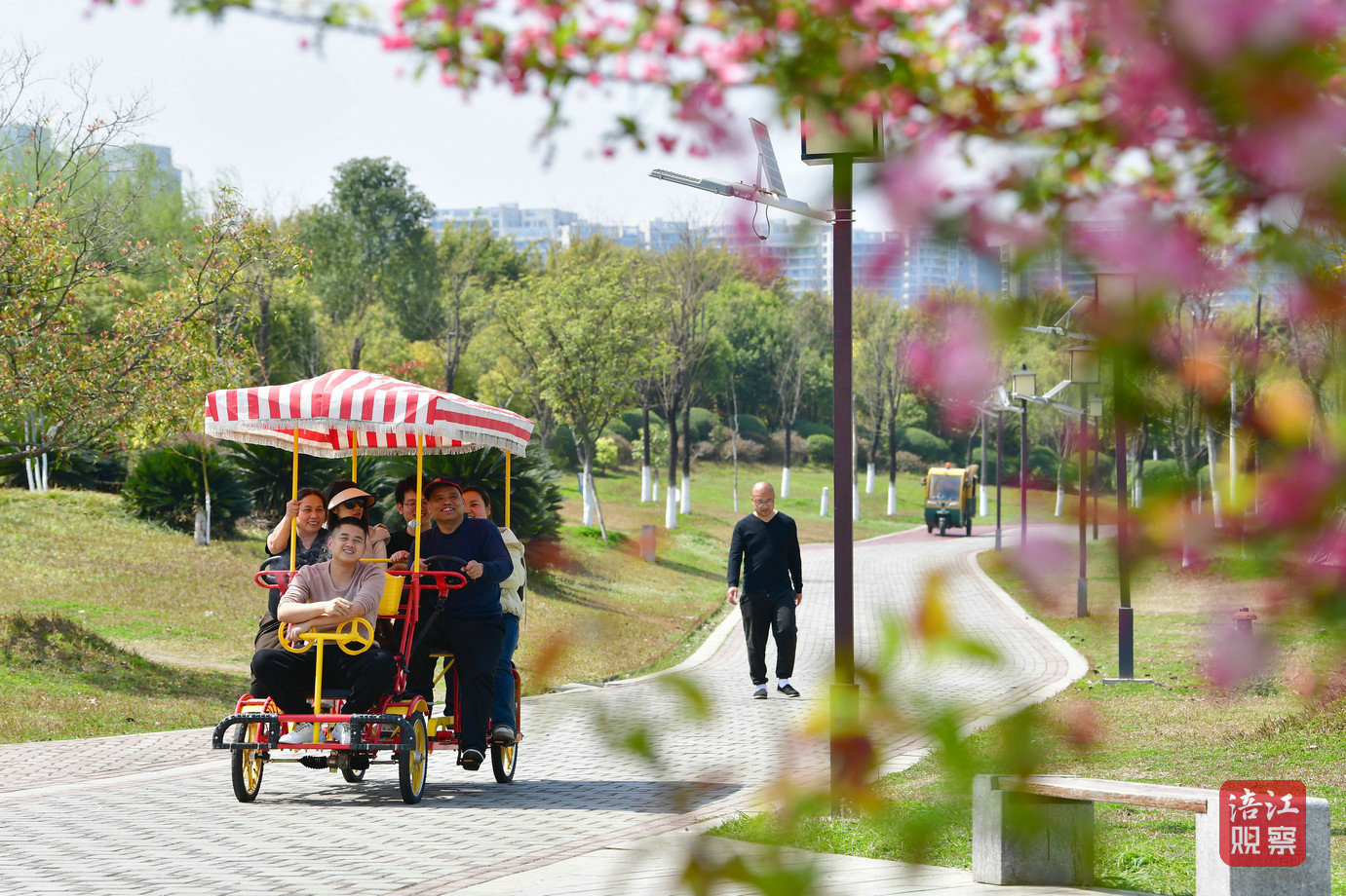 3月23日,正值周末,陽(yáng)光明媚,綿陽(yáng)市民紛紛走出家門,來(lái)到林間野地享受休閑時(shí)光。