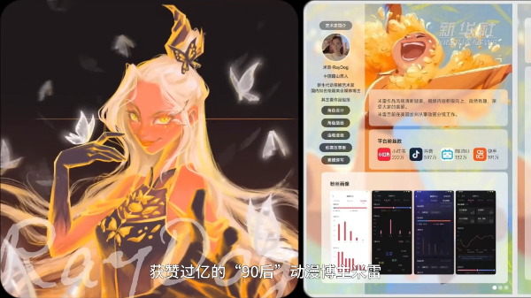 動(dòng)漫與國(guó)風(fēng)完美銜接,形成流暢的視頻變裝,文物在她的筆下穿過現(xiàn)實(shí)和虛擬的邊界,重新綻放,閃亮又鮮活。