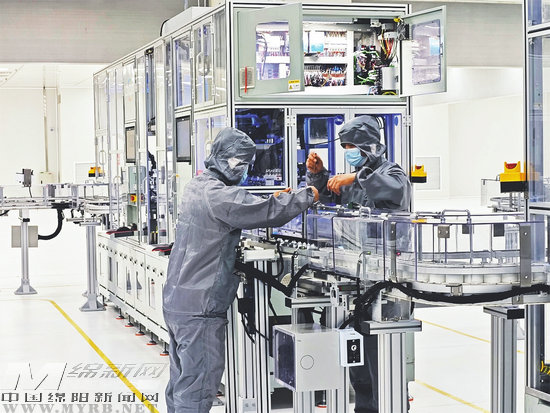 在綿陽(yáng)創(chuàng)明智能電池有限責(zé)任公司鋰電池生產(chǎn)車間,工人正在調(diào)試電池產(chǎn)線。