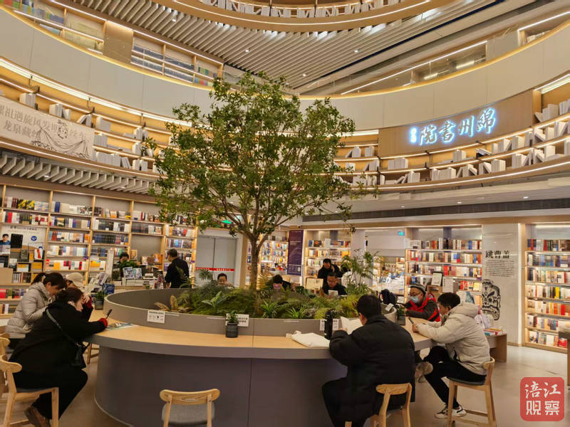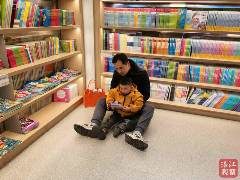 走進(jìn)新華文軒書店,到處都是讀書的人群,或圍坐一圈,或三三兩兩分散在各個書架旁。三樓是兒童讀物專區(qū),有不少父母陪伴著孩子在這里看書。