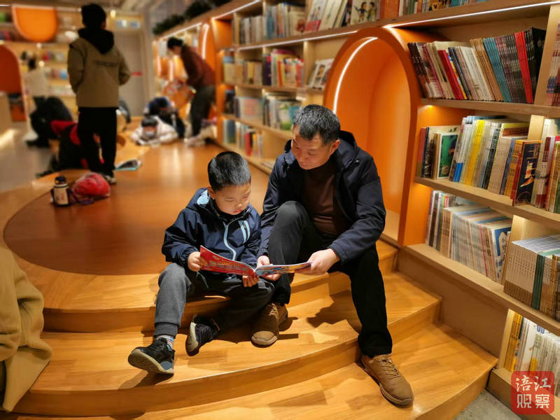 經(jīng)開區(qū)的湯先生把小兒子抱在懷里,兩人一起看著一本書,其樂融融。湯先生說,平時工作比較忙,今天是第一次帶小兒子和他哥哥來看書,以后有時間也會盡量多帶他們來。