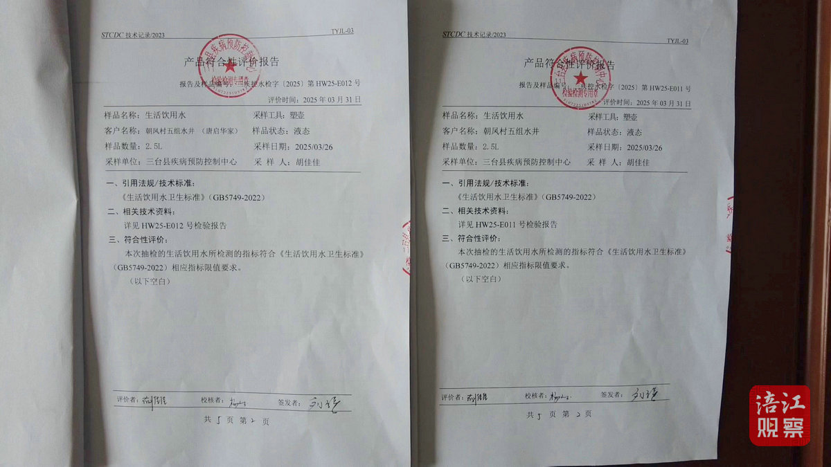 記者獲悉,在3月26日,三臺縣水利局分別對群眾反映的可能存在問題的水井和農(nóng)戶家中的水進行了檢測,根據(jù)檢測報告,各項檢測指標均符合《生活飲用水衛(wèi)生標準》。簡而言之,村民們擔心的這汪山泉沒有問題,可正常使用。