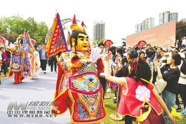 涪江畔,春野浮綠。綿陽(yáng)江油明月島哪吒文化主題公園內(nèi),近十米高的哪吒雕塑手持火尖槍,腳踩風(fēng)火輪,與不遠(yuǎn)處巨幕投影的舞臺(tái)交相輝映,將千年傳說(shuō)與現(xiàn)代光影糅合成奇幻畫(huà)卷。4月10日上午,第九屆海峽兩岸哪吒民俗文化交流活動(dòng)在此啟幕,非遺絕技與科技創(chuàng)意碰撞,巡游方陣掀起層層熱浪。