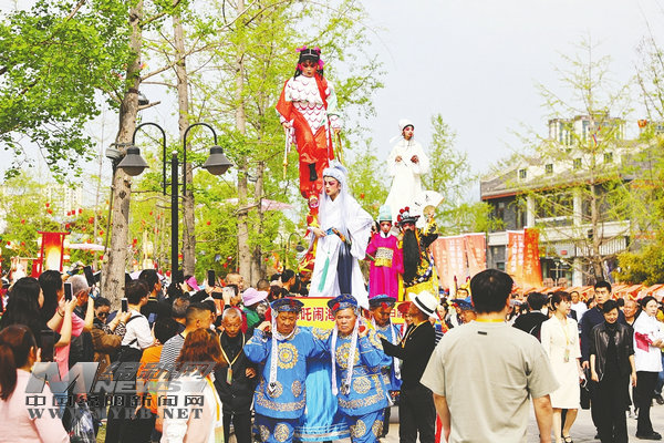鑼鼓聲起,國(guó)家級(jí)非遺青林口高抬戲率先破開(kāi)人潮。扎著沖天髻的小哪吒被托舉至四米高的半空,足踏波紋綢制成的“海浪”,手中的混天綾似攪動(dòng)起東海波濤;《李白醉寫》高抬戲同樣精彩,扮演詩(shī)仙的男童單足立于“高力士”肩上,由“楊國(guó)忠”托舉著,蘸墨揮毫,現(xiàn)場(chǎng)觀眾舉著相機(jī)爭(zhēng)相拍攝:“這簡(jiǎn)直是移動(dòng)的典故!”