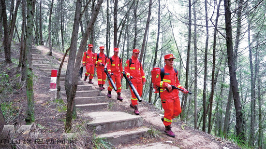 4月15日清晨,鹽亭縣森林草原專業(yè)撲火隊(duì)班長杜元帥和隊(duì)員們來到高山公園,沿著路線開展森林防火巡查,他們每天需巡查山林33.3平方公里,確保高山公園沿線森林防火安全。