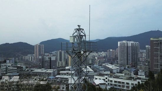 在鹽亭縣白塔山火情監(jiān)測(cè)點(diǎn),一名高大的“哨兵”全天候值守。該監(jiān)控設(shè)備安裝在15米高的鐵塔上,一雙“火眼金睛”能全方位24小時(shí)不間斷監(jiān)測(cè)白塔山附近7至10公里范圍內(nèi)的火情。