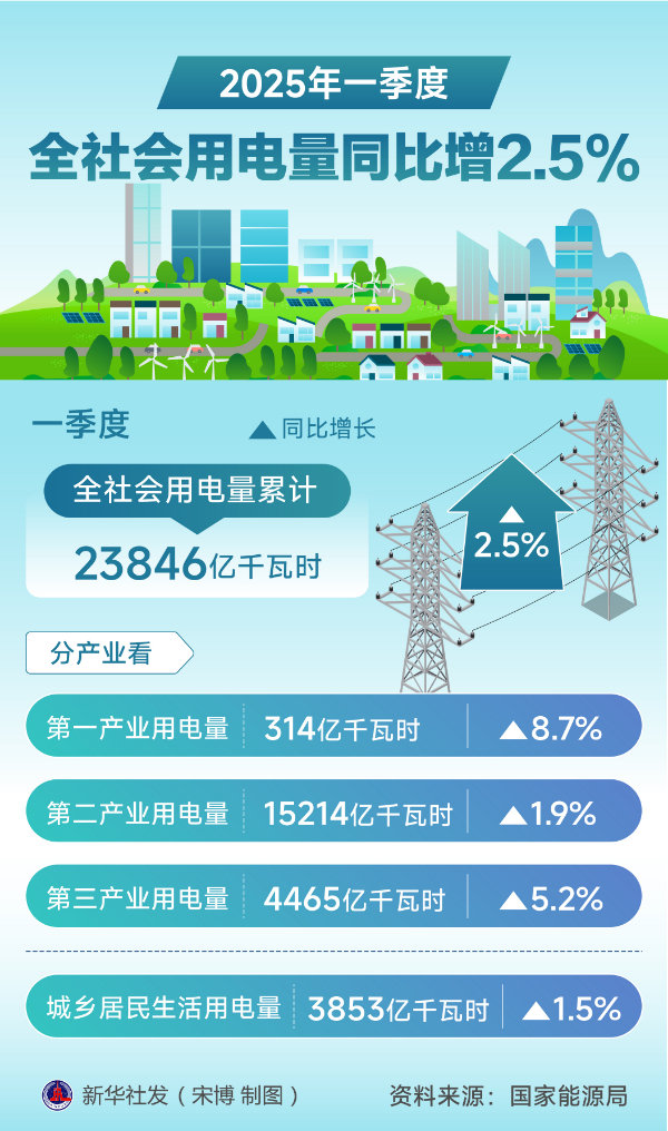 新華社北京4月18日電 題:一季度全社會(huì)用電量同比增2.5% 用電結(jié)構(gòu)優(yōu)化