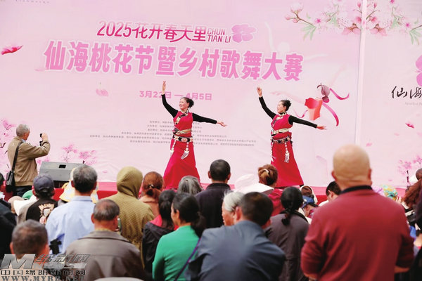 游客觀看仙海桃花節(jié)暨鄉(xiāng)村歌舞大賽文藝演出