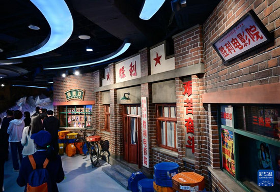 4月28日,觀眾在青島電影博物館勝利電影院場景復原展區(qū)參觀。