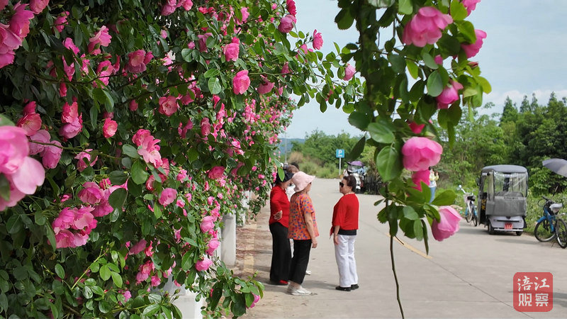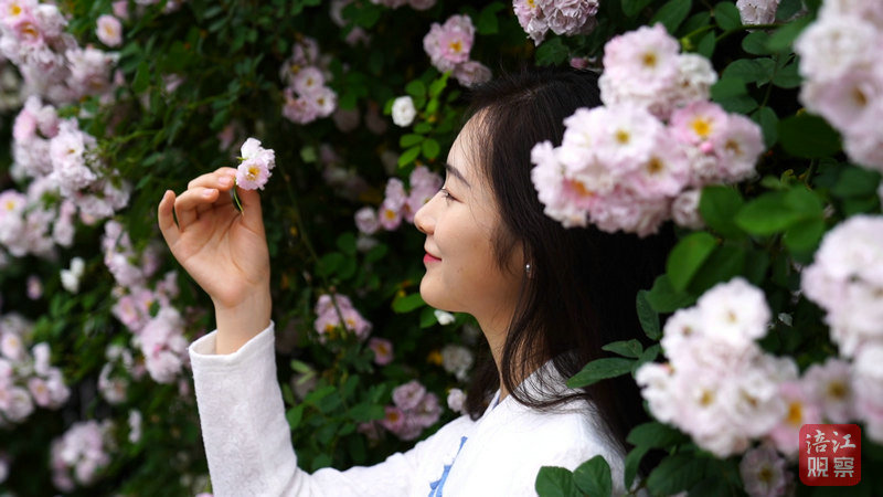 在李白少年求學(xué)的大匡山下,大康鎮(zhèn)集鎮(zhèn)正沉浸在一片花紅柳綠的詩意之中。主干道兩側(cè),薔薇藤蔓纏綿交織,蜿蜒出數(shù)百米的繽紛“花廊”。雪白與粉紅的花朵層層疊疊,宛如傾瀉的云霞,又似溫柔的錦緞,引得游人紛紛駐足,用鏡頭定格這抹絢麗。