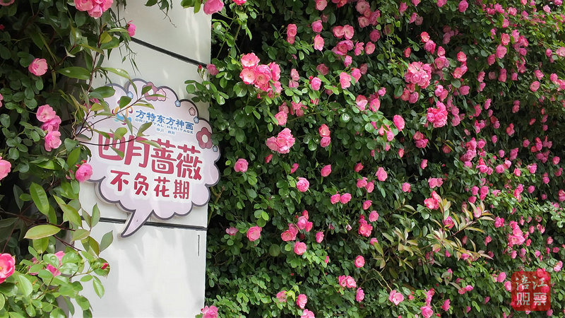 而在綿陽方特東方神畫主題樂園,殷紅的薔薇花如熱烈的火焰,密密匝匝地攀附在柵欄之上。