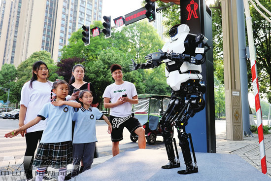 機器人在九洲大道做交通引導員?。ㄓ浾?陳冬冬 攝)