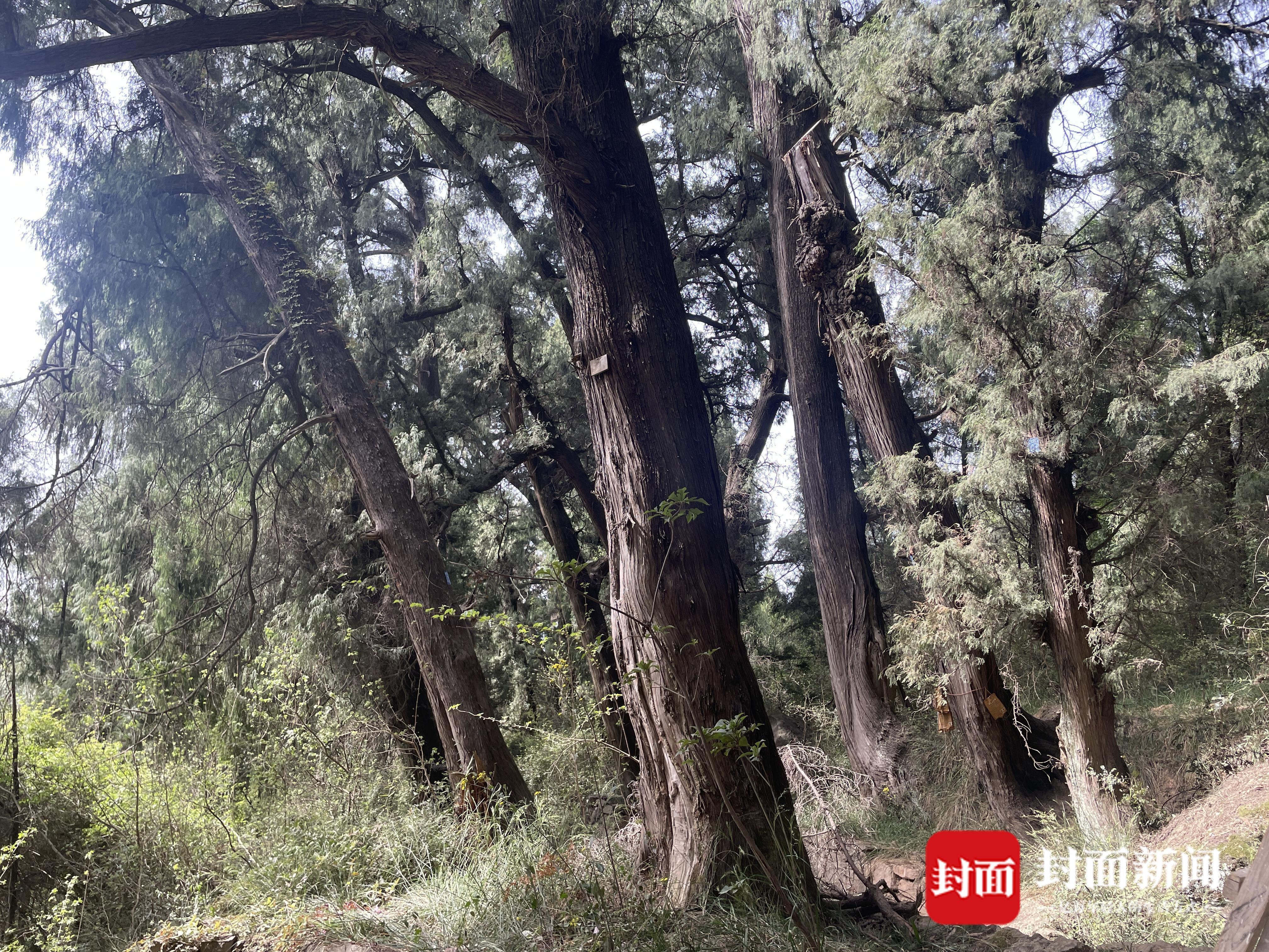 “我們現(xiàn)在所在位置叫作斷背梁,是蜀道劍閬道南線的重要節(jié)點之一。而翠云廊劍閬道徐家陔至文林鋪遺址,就是我們此次‘四普’中的重要新發(fā)現(xiàn)。”進入4月,四川盆地的氣溫陡然上升,在烈日的曝曬中,劍閣縣的氣溫一時飆到了30℃。但當腳步踏上劍閬道,沿線分布的古柏樹遮天蔽日,粗大的樹干昭示著它們在此處的悠久歷史?,F(xiàn)場,劍閣縣文管所辦公室主任傅玉斌、劍閣縣普查隊員嚴江浙與記者一同行走在這條古老的蜀道上,介紹了其意義和價值。