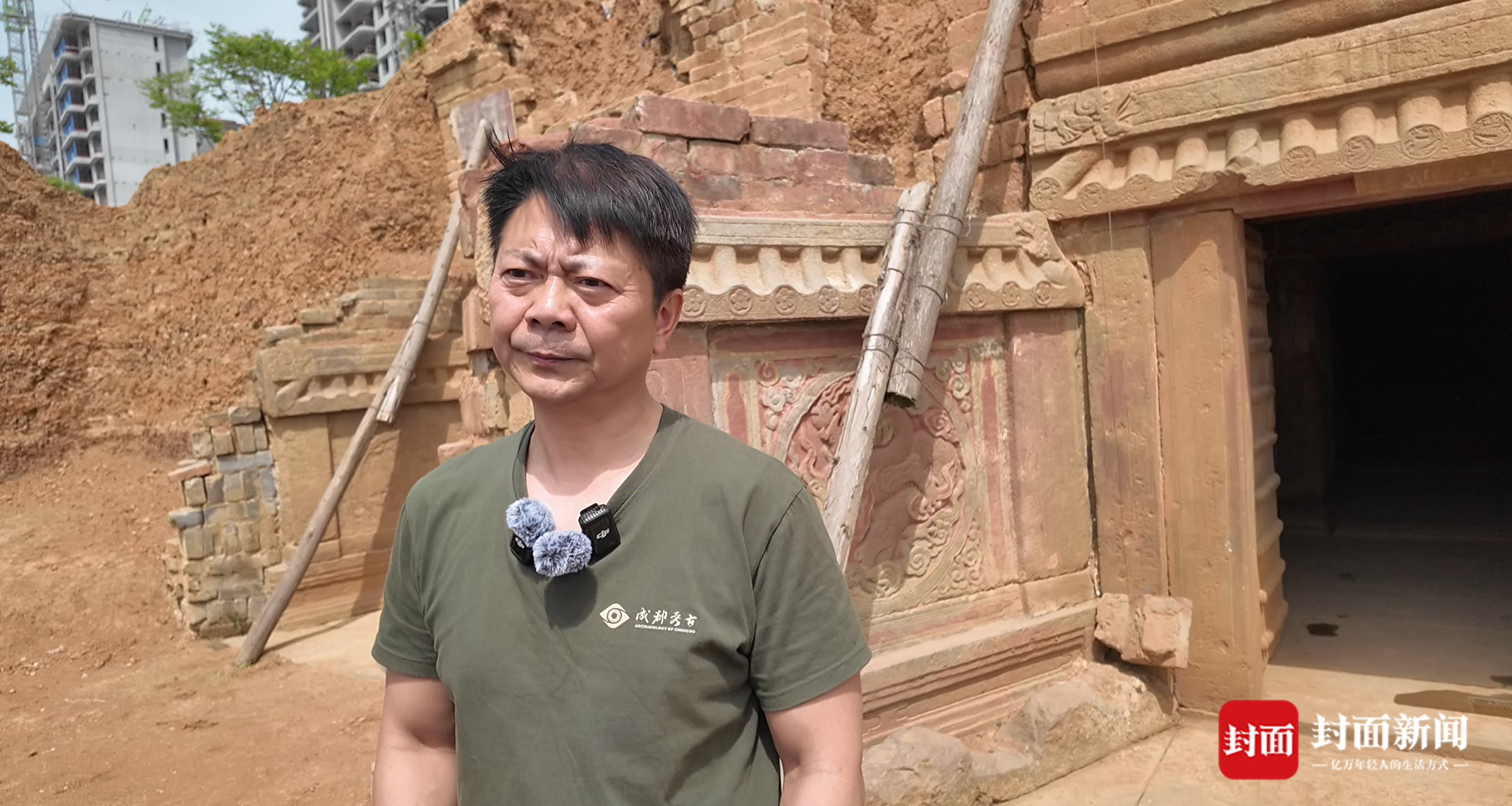 在炙熱的陽光中,明代蜀端王陵及其陵前建筑遺存就裸露在錦江區(qū)柳江街道的一處建設工地上?,F(xiàn)場,長期致力于田野考古的研究與發(fā)掘,參與了眾多重大考古項目的成都文物考古研究所發(fā)掘三隊的主任謝濤,向記者介紹了端王陵被發(fā)現(xiàn)背后的故事。