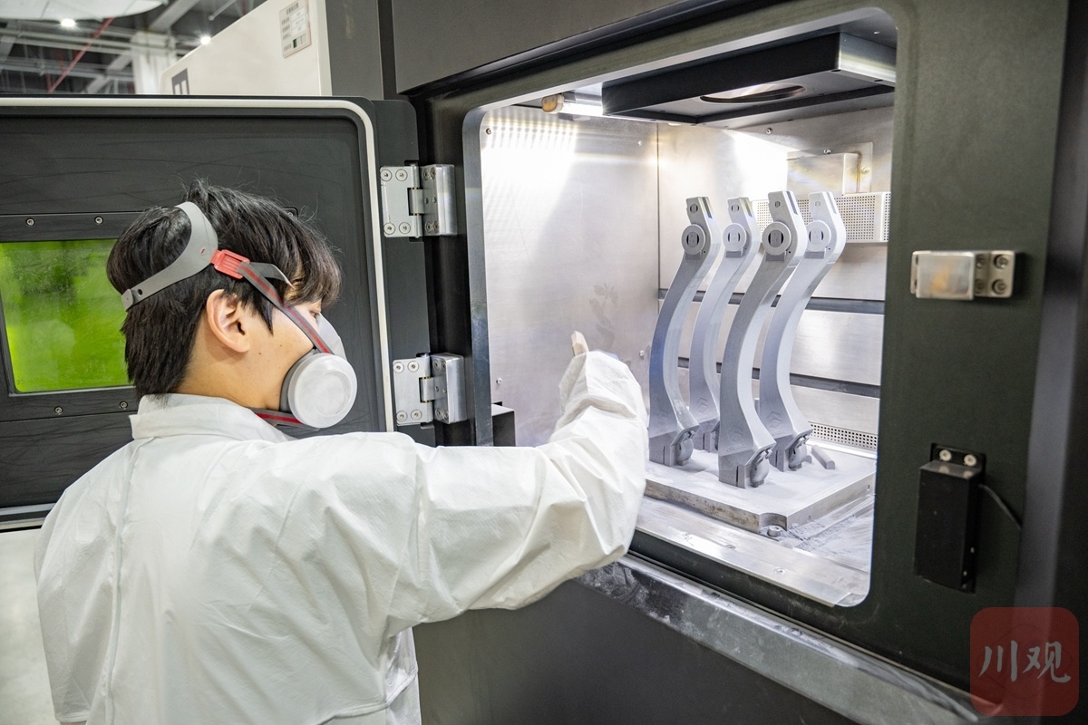 激光快速掃過,細(xì)密的金屬粉末堆疊,一根略帶弧度的“機(jī)器狗腿”逐漸成型。“五一”假期,四川五八增材科技有限公司(以下簡(jiǎn)稱:五八增材)的“金屬3D打印機(jī)”仍忙碌運(yùn)轉(zhuǎn)。“訂單不停,都是定制的精密零件。”工作人員說。