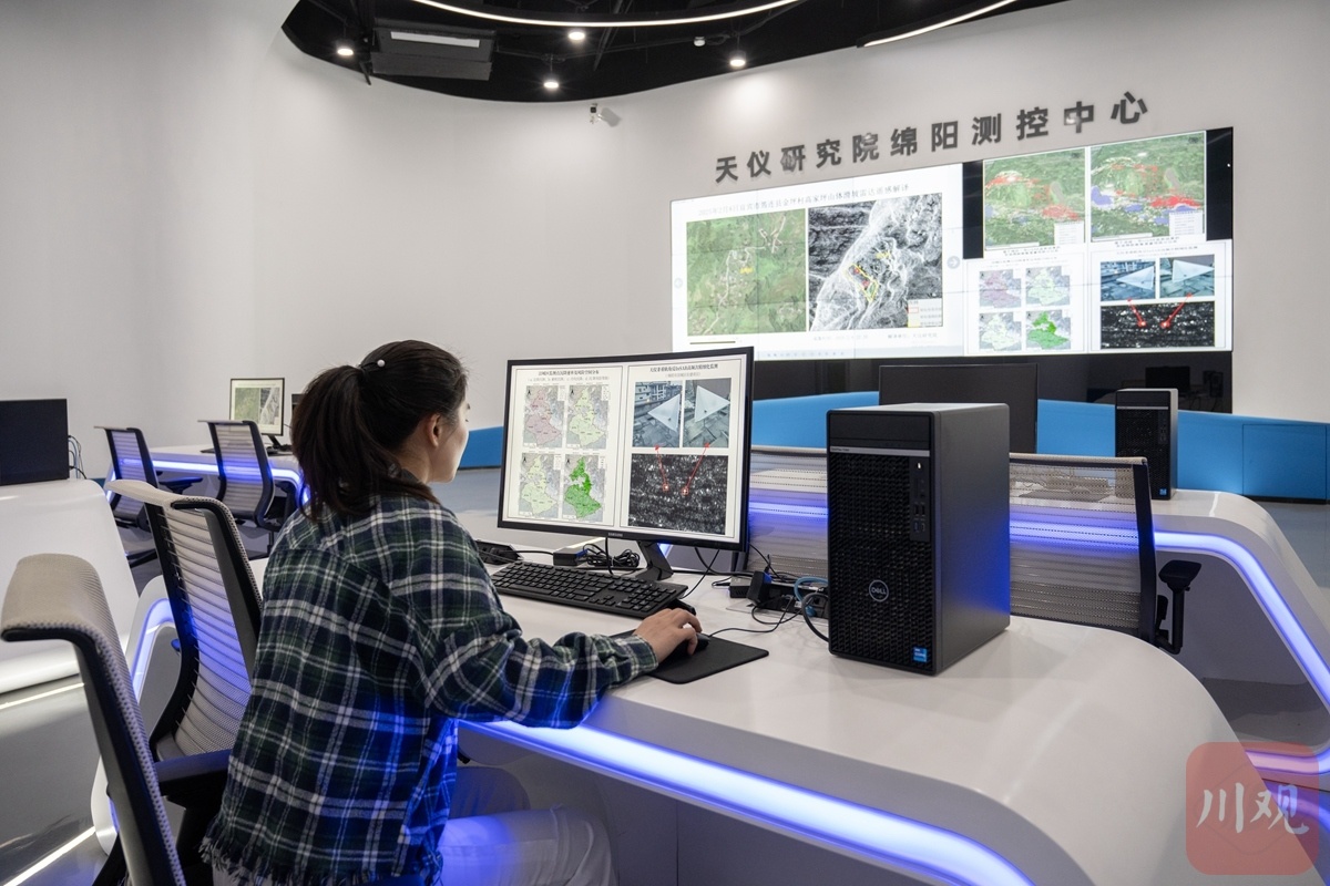 綿陽(yáng)天儀空間科技有限公司內(nèi),工作人員正在通過衛(wèi)星圖像進(jìn)行地質(zhì)監(jiān)測(cè)。 攝影/趙明
