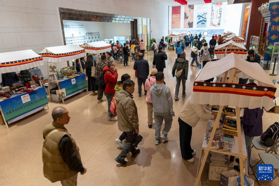 5月18日,觀眾在西藏博物館舉行的文創(chuàng)集市現(xiàn)場選購文創(chuàng)產(chǎn)品。