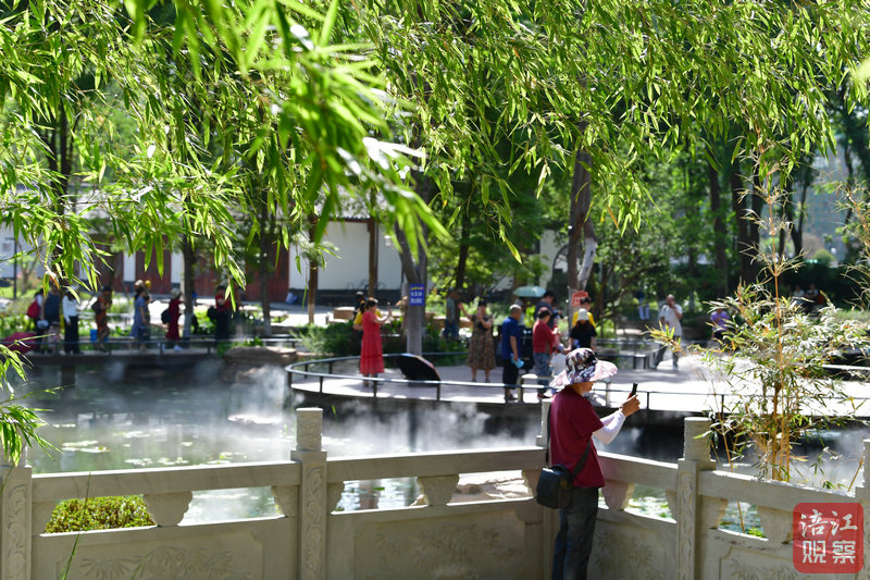 新建的日新公園占地170余畝,園內(nèi)曲徑通幽,亭臺(tái)錯(cuò)落有致,水霧繚繞,處處洋溢著詩情畫意,游客們陶醉其中,流連忘返。