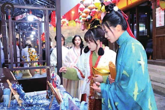 徜徉在潼川古城,民樂(lè)奏響千年梓州韻律,古韻巡游重現(xiàn)盛唐氣象;李白與杜甫“斗詩(shī)擂臺(tái)”吸引游客即興對(duì)詩(shī),詩(shī)詞聲韻回蕩古城街巷;多項(xiàng)非遺技藝通過(guò)創(chuàng)意花車(chē)市集與游客零距離互動(dòng),指尖匠心與市井煙火交織成流動(dòng)的文化長(zhǎng)卷,帶領(lǐng)游客沉浸式體驗(yàn)文旅之趣。