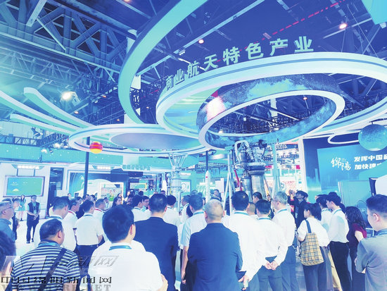 綿陽館商業(yè)航天產(chǎn)業(yè)展區(qū)實力“圈粉”,吸引眾多觀眾駐足觀看。
