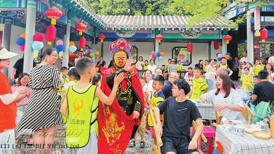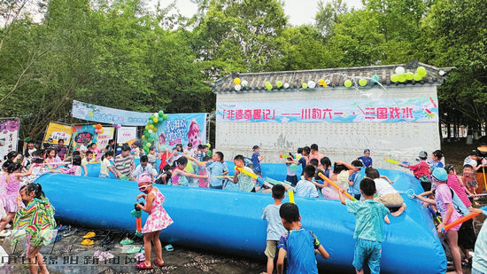 活動現(xiàn)場還設置了臉譜繪畫和戲水互動環(huán)節(jié)。孩子們拿起畫筆,為空白臉譜精心上色,稚嫩的筆觸下誕生出神態(tài)各異的“小張飛”“小花木蘭”;戲水區(qū)則化作歡樂的戰(zhàn)場,隨著水槍激戰(zhàn)升級,晶瑩的水花與歡快的笑聲在陽光下交織飛濺,傳統(tǒng)文化與節(jié)日狂歡在此完美融合。