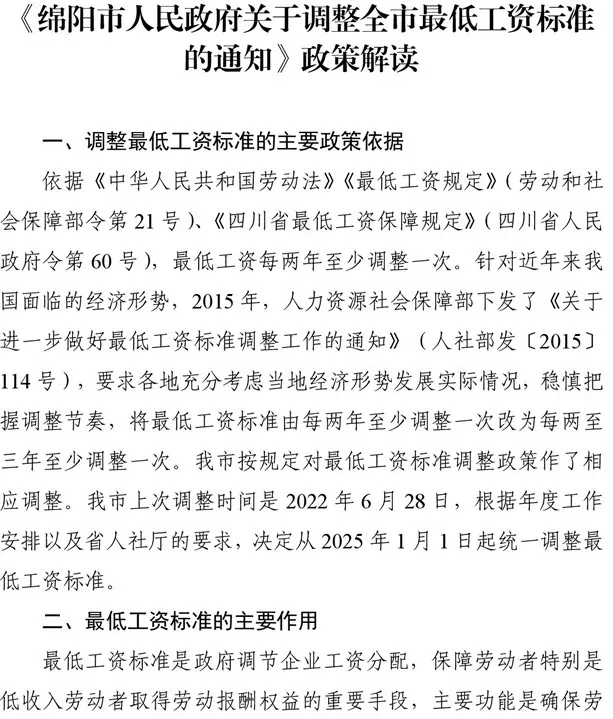 《綿陽市人民政府關(guān)于調(diào)整全市最低工資標(biāo)準(zhǔn)的通知》