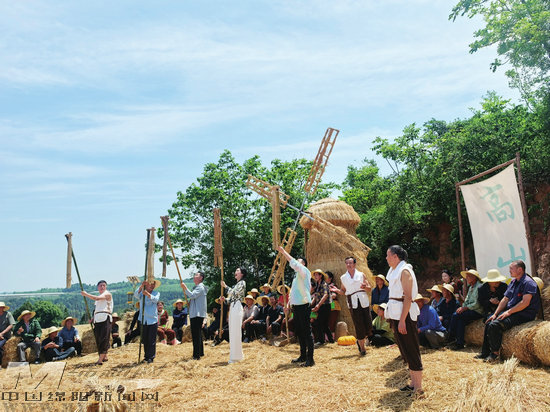在仙鶴鎮(zhèn)帽兒山的金色麥田里,拍攝《田野歡歌》的第三個歡聚場景。