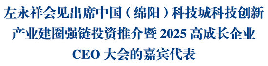 左永祥會(huì)見出席中國(綿陽)科技城科技創(chuàng)新產(chǎn)業(yè)建圈強(qiáng)鏈投資推介暨2025高成長企業(yè)CEO大會(huì)的嘉賓代表