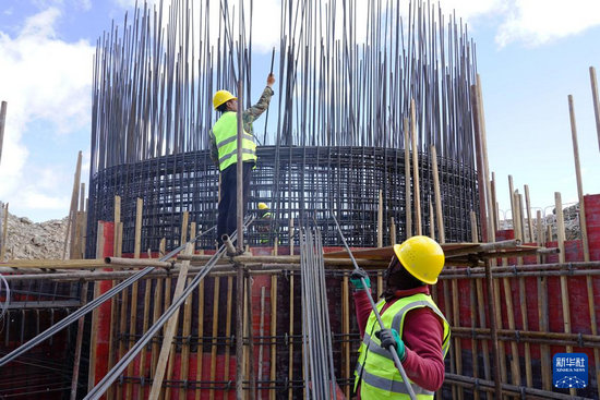 6月21日,施工人員在青海冷湖天文觀測研究基地的望遠(yuǎn)鏡項(xiàng)目施工現(xiàn)場作業(yè)。新華社記者 陳杰 攝