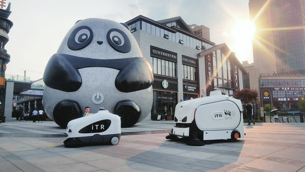 四川它人科技有限公司的商用清潔機器人亮相“上馬故事”商業(yè)街