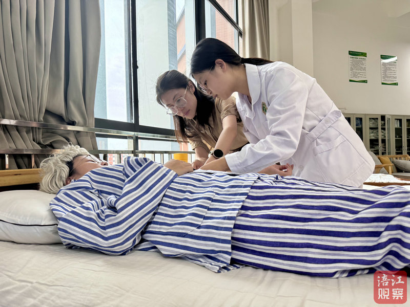 “奶奶,測量血壓的時候,會有一點緊,不要擔心,這是正常的,要注意保持不動哦,這樣測量數(shù)據(jù)才準確。”在四川幼兒師范高等專科學(xué)校老年服務(wù)實訓(xùn)中心,智慧健康養(yǎng)老服務(wù)與管理專業(yè)學(xué)生正在專業(yè)老師的指導(dǎo)下練習護理技能。